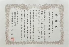 株式会社シモジマより代表取締役社長感謝状を受賞