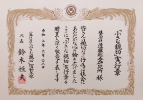 「小さな親切」運動本部より有功章・代表表彰状を受賞