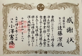 大本山増上寺より法主感謝状を受賞